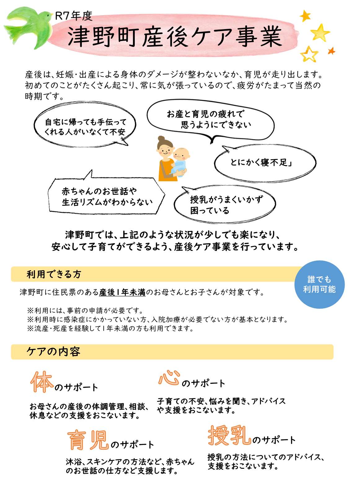 詳しくは、チラシをご覧ください。[産後ケア事業チラシ]