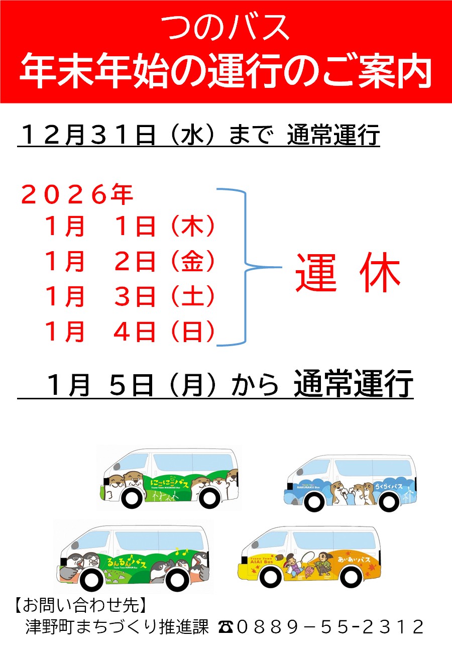 つのバス年末年始の運行について