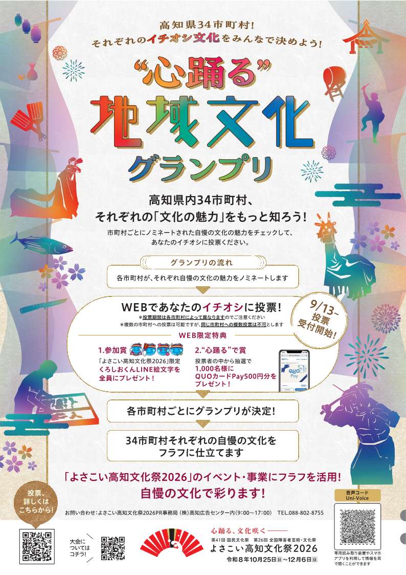 よさこい高知文化祭2026「”心踊る”地域文化グランプリ」の投票を実施しています