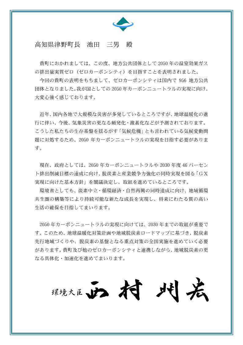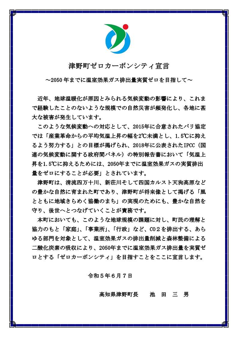 【津野町ゼロカーボンシティ宣言書】